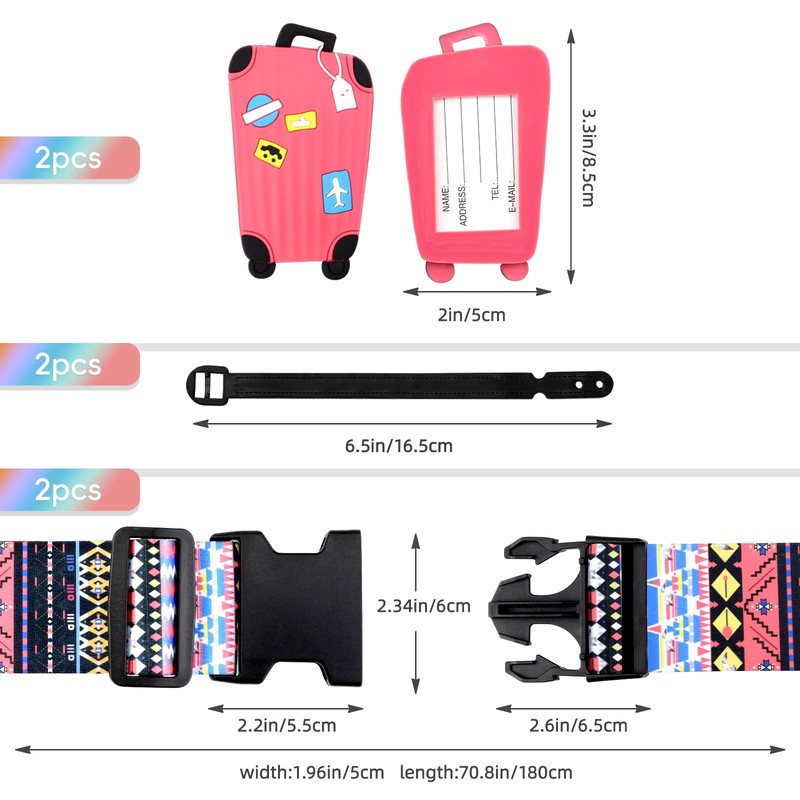 - Great Gift The luggage strap is very lightweight and does not take up space. A set of luggage straps and luggage tags is the perfect travel gift for family, friends or yourself. If you are afraid of others taking the wrong suitcase, each of the numerous patterns is an absolute eye-catcher and a fashionable accessory for your luggage. Travel accessories can bring joy and comfort to your trip. If you have any questions about your purchase, you can also contact us by email.