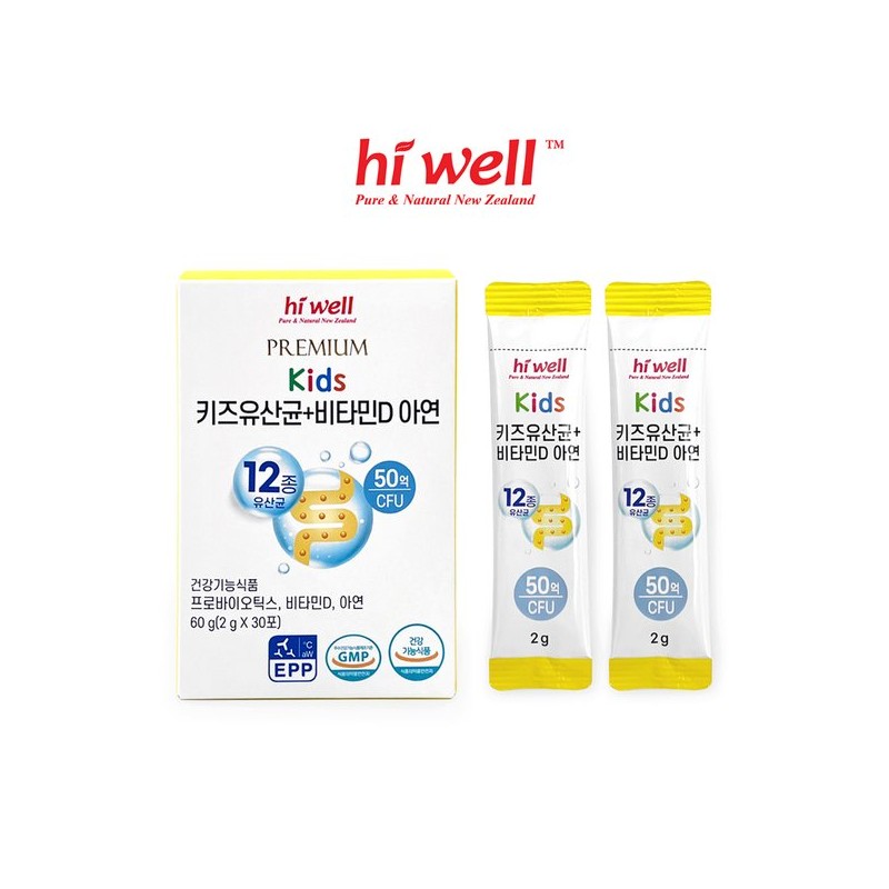 Hiwell 프리미엄 키즈 유산균 비타민D 아연 30포 1통 Premium Kids Probiotic Vitamin D Zinc 30 Sachets 1 Pack