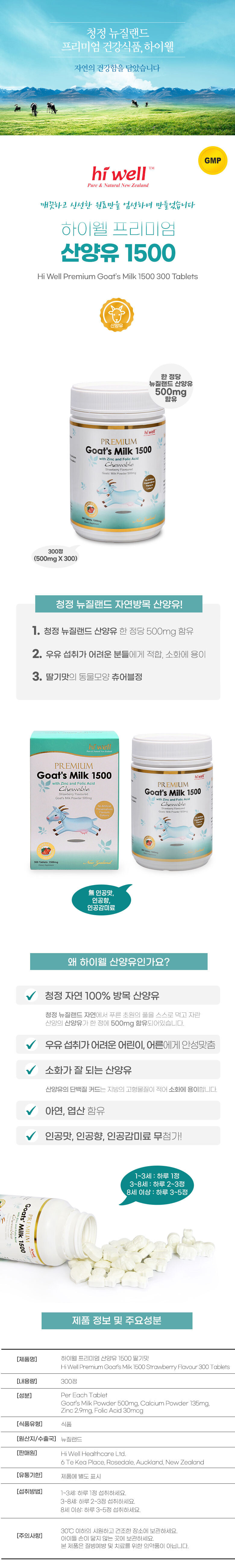 - 제품명: 하이웰 프리미엄 산양유 1500 300츄어블 (딸기맛) x3