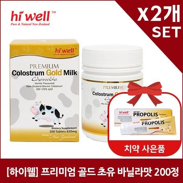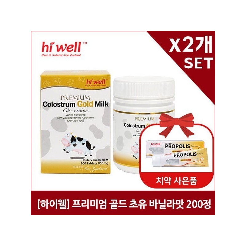 [Hiwell] Premium Gold Colostrum 200 Chewable Tablets (Vanilla Flavor) 2 / [하이웰] 프리미엄 골드초유 200츄어블정 (바닐라맛) 2개