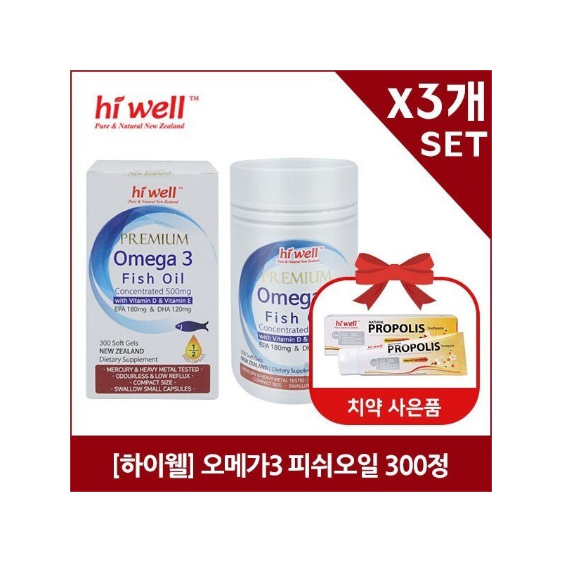 [Hiwell] Premium Omega 3 Fish Oil 300 Softgels x3 / [하이웰] 프리미엄 오메가3 피쉬오일 300소프트젤 x3