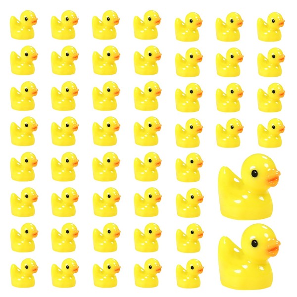 HIXNUG Mini Resin Ducks Figures Yellow Tiny Cute Duck Miniature Duck Figures Ornaments DIY Micro Handwork Crafts Decorations for Christmas Birthday Party Aquarium Garden Dollhouse(50)