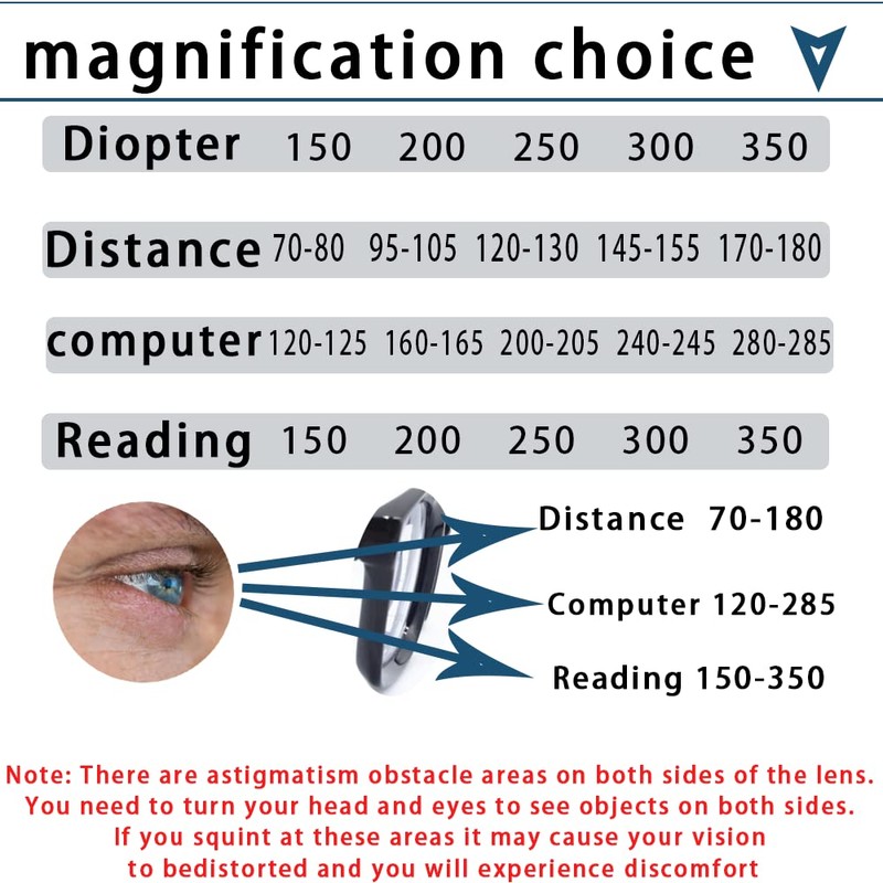 - ▶ Note: Before selecting the correct magnification, it is recommended to consult an optometrist for accurate magnification recommendations. Otherwise, the multiple is too strong or too weak, will cause blurred vision or dizziness. Please choose carefully. After the age of 40, vision changes from year to year and requires the attention of the buyer. For first-time multifocal reading glasses wearers, it can take one to three weeks to get used to.