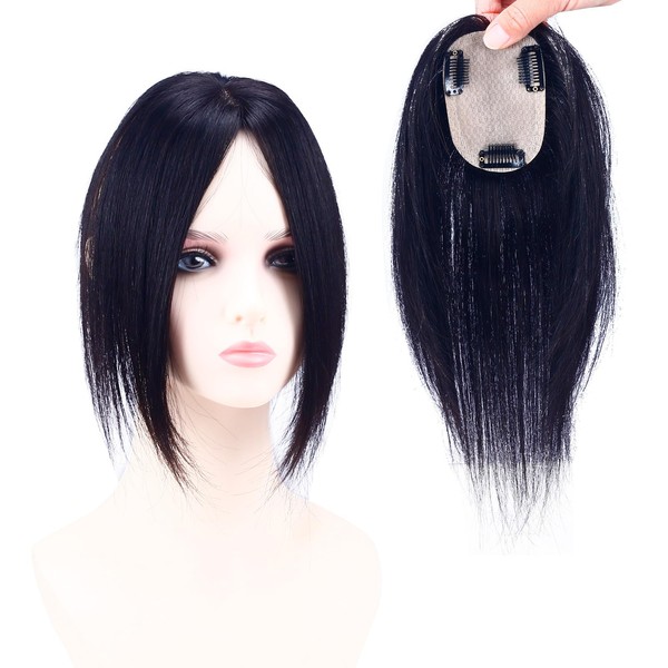 HIYE 部分ウィッグ 頭頂部 女性 人毛100% 手植え ポイントウィッグ リアル 分け目 人工肌 薄毛隠し レディース トップカバー ヘアピース 自然 軽量 白髪 小顔効果 7×10cm センター分け (自然色, 25cm)