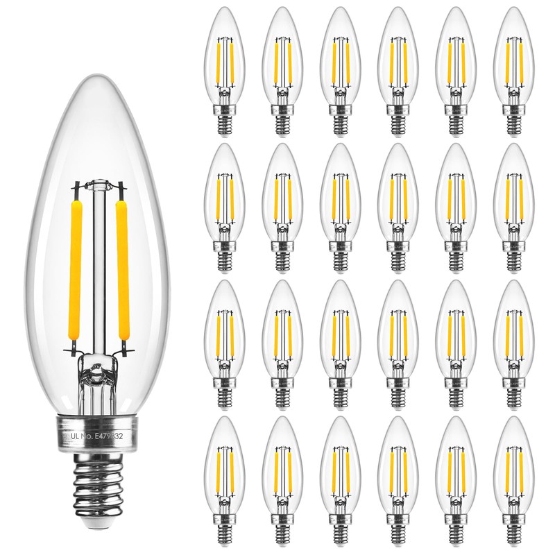 - Dimmable: Enjoy a smooth and broad dimming range from 10% to 100% with these candelabra light bulbs. They are compatible with most modern LED dimmers, ensuring a flicker-free and noise-free dimming experience.