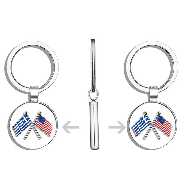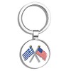 HJ Media Crossed Poles USA & Greece Waving Flags (American Greek) Metal Round Metal Key Chain Keychain Ring