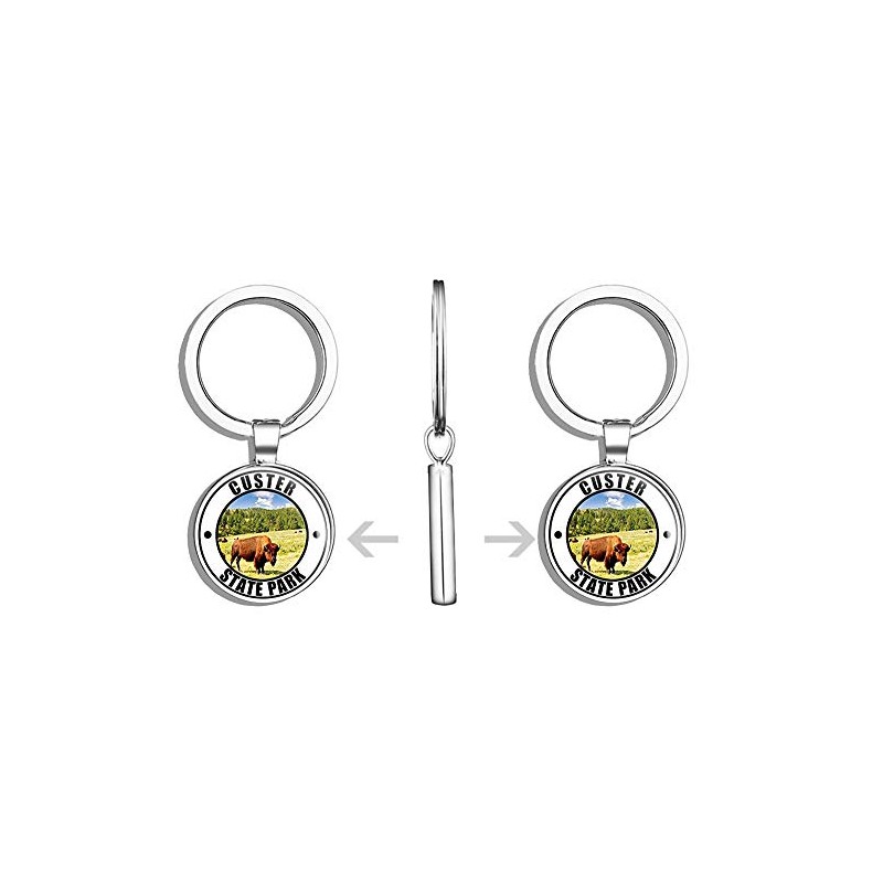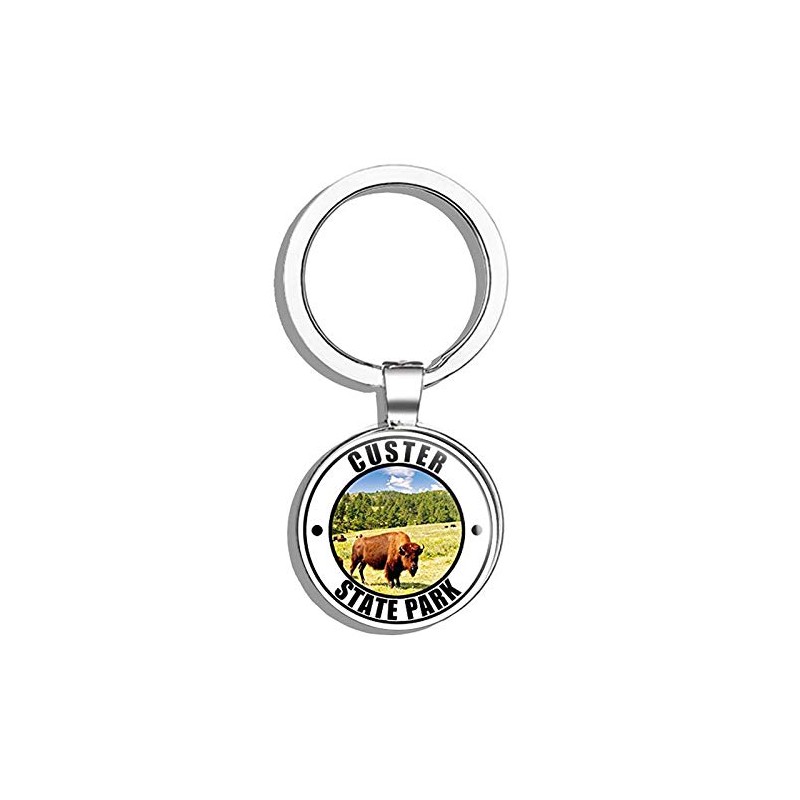 HJ Media Round Custer State Park (Black Hills Dakota sd) Metal Round Metal Key Chain Keychain Ring