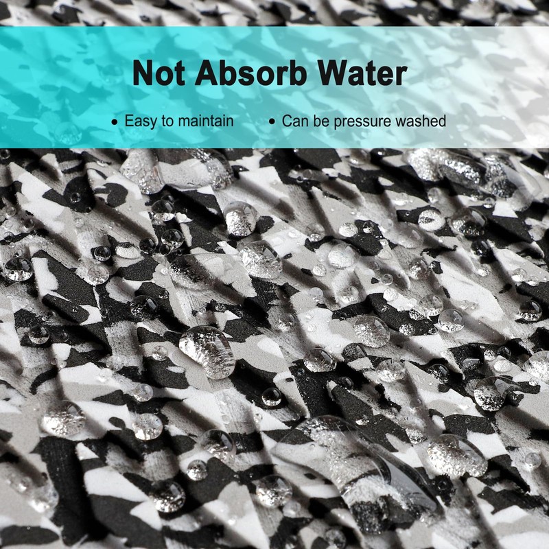 - Non-Slip Traction Pad: EVA foam boat flooring feature with diamond grooves, can increase friction and play a good anti-skid, also can quickly guide rainwater out if it rains. Boat decking foam provide exceptional comfort and traction, whether dry or wet