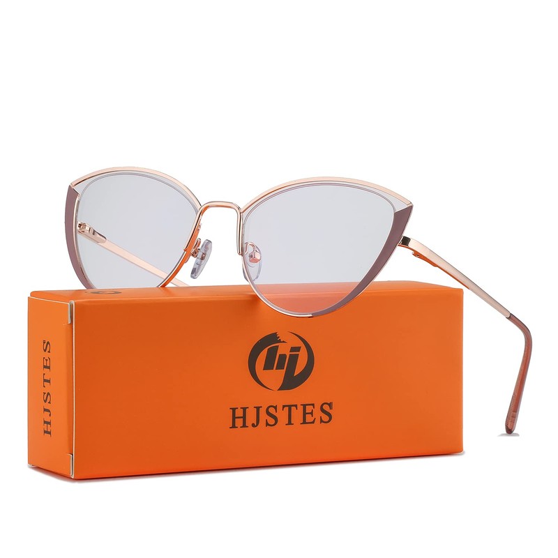 HJSTES Blue Light Blocking Glasses Women Trendy Cat Eye Metal Frame Computer Reading Eyewear(Rose Gold)