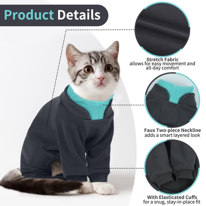 - 【 Full Coverage for Maximum Cosiness 】 Designed with four-leg wrapping, this cat onesie long sleeve keeps your cat completely covered, shielding them from chilly draughts during autumn, winter and early spring. No more shivers or huddling under radiators – your feline friend will be toastier than a teacake
