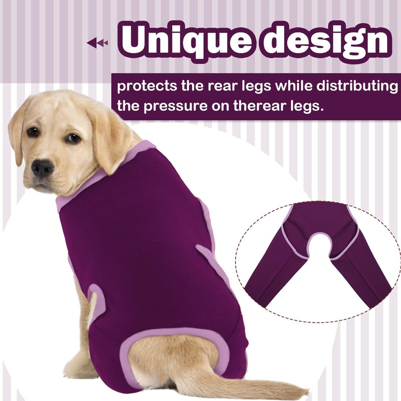 - COMPREHENSIVE PROTECTION Our suit has been expertly designed to prevent your dog from licking leg wounds, surgical incisions, or post-operative areas. For some dogs, both knees are repaired at the same time - our suit provides protection for both hind legs.