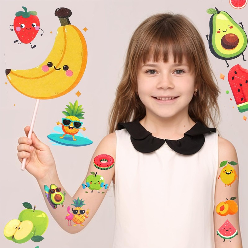 - Suitable for Any Occasion: You can stick the tattoo stickers on the part you want, such as hands, face, ankles, neck, shoulders, legs, etc. Suitable for Hawaiian theme parties, birthdays or summer parties, these tattoos are fun accessories for boys, girls and even adults. There are multiple designs in each pack, mix and match your favorite fruit tattoos to create creative and fashionable body art