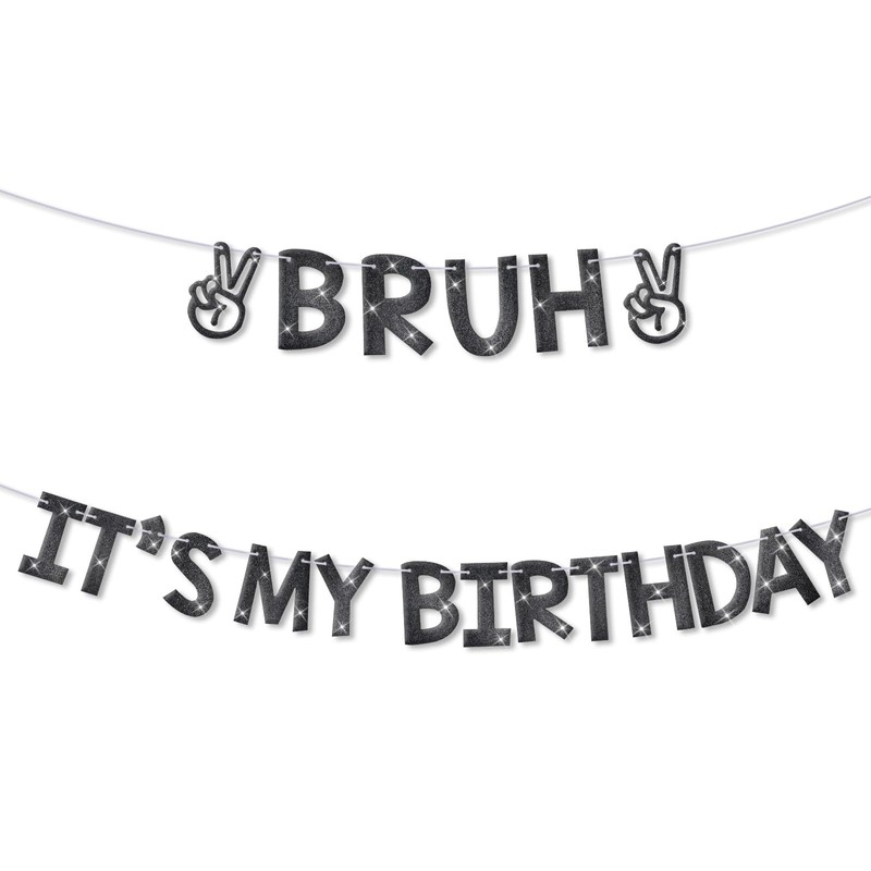 HJZHII Bruh It's My Birthday Banner, Black Giltter Teen Boy Birthday Decorations Funny Birthdays Banner Happy Birthdays Party Supplies for Preteen Teen Boys Girls Party Decor DIY