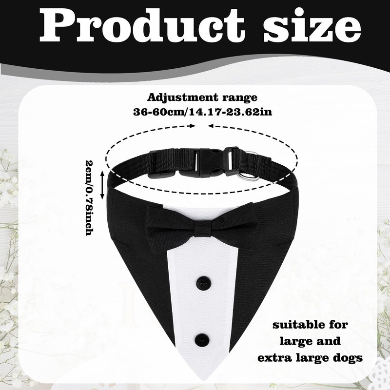 - Formal Dog Tuxedo Bandana: This black and white tuxedo bandana collar transforms your dog into a perfect gentleman for weddings, engagements, Valentine's Day and other special events. The stylish bow tie design adds a touch of sophistication to make your furry family member look dapper and photo-ready for every important occasion