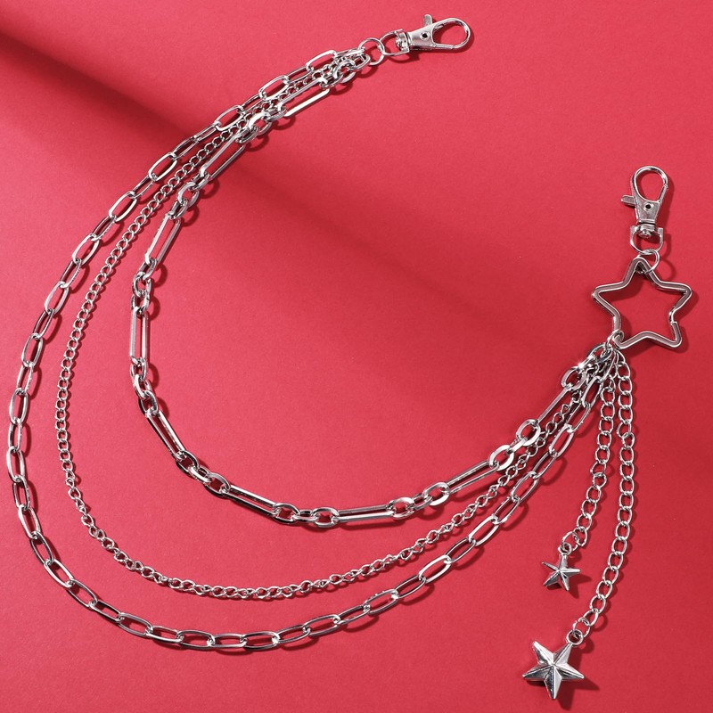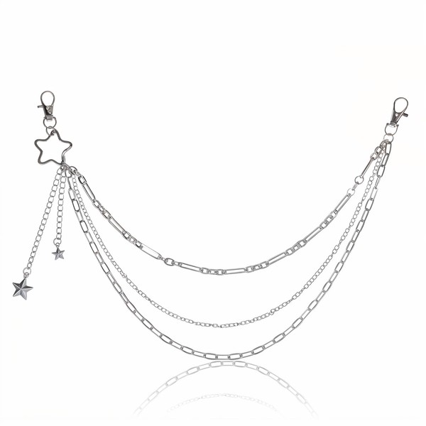 HJZHII Star Pants Chain, Hip Hop Goth Punk Pocket Chains Star Wallet Chains Stylish Silver Layered Jean Chain for Men Women Accessories