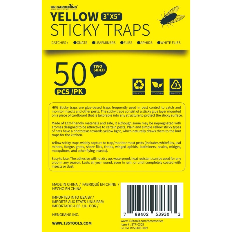 HK Gardening 50PCS Sticky Fly 3"x5" Paper Yellow Traps Fruit Flies Insect Glue Catcher