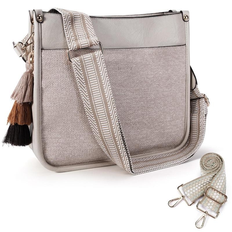 HKCLUF 4045 Women's Fashionable Crossbody Bags For Women Designer Leather Hobo Handbags Women Shoulder Bucket Bags With 2count Adjustable Guitar Strap Perfect:_Flax brown