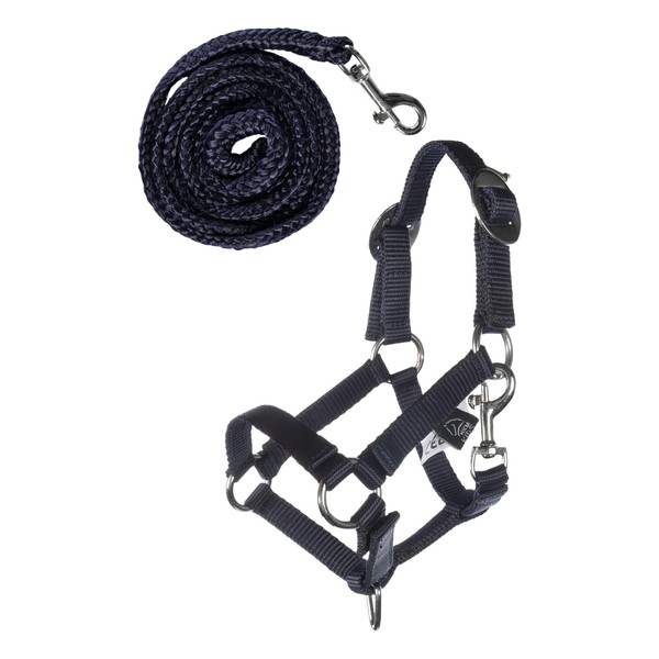 HKM Hobby Horsing Headcollar Set Basic Halter and Rope for Horse (Navy)