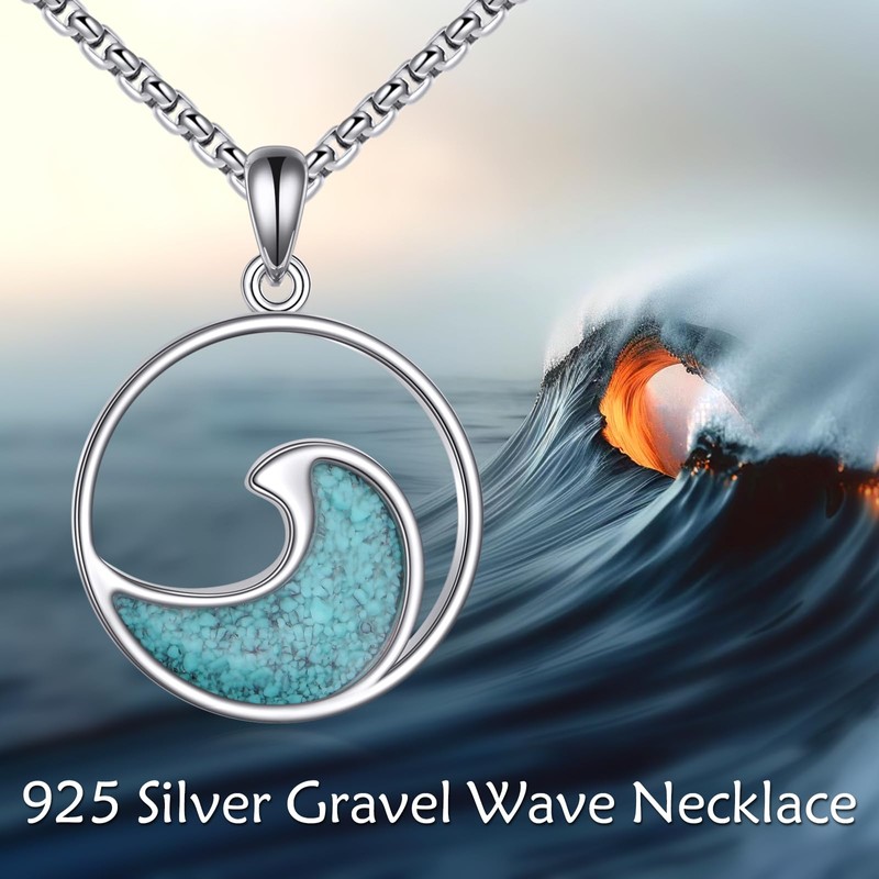 - Material: This captivating wave necklace combines the pandent of 925 sterling silver and the chain of stainless steel, with the natural allure of hand-selected turquoise. Ensuring that this necklace stands out as both a fashion statement and a piece of wearable art