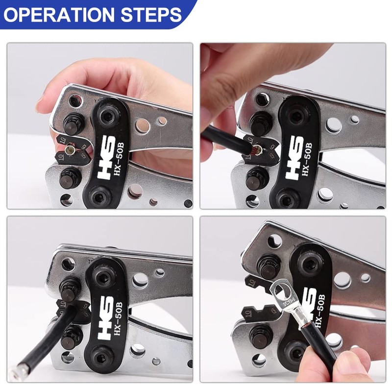 - 【Package Contents】1 x HX-50B Crimper,1 x Wire Cutter, 20 x Cable Lugs (8Pcs Sc Ring Lugs & 12Pcs Copper Ring Lugs),20 x 3:1 Shrink Ratio Heat Shrink Tubes.