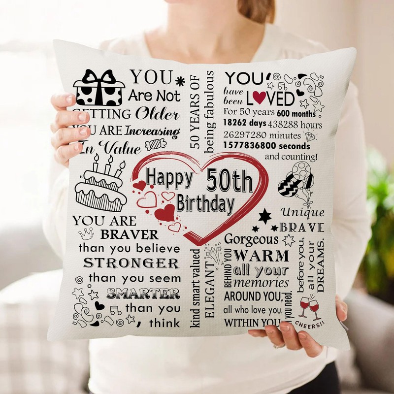 HKTNGEX Birthday Cushion Cover Gift,Happy Birthday Throw Pillow Cover Pillowcase For 10th 11th 12th 13th 14th 15th 16th 17th18th...Daughter Son Sisters Mom Dad Friends Reminder Home Decor (50th)