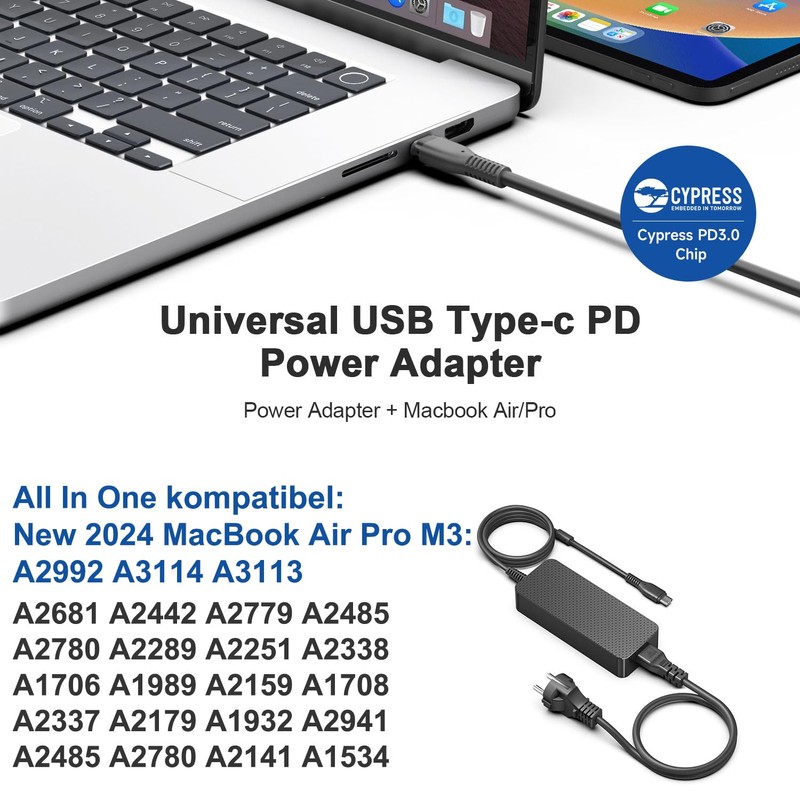- HKY energiesparendes und umweltfreundliches 100 W USB TYPE-C-Netzteil mit Cypress PD3.0-Chip, perfekt kompatibel mit MacBook/Mainstream-Notebook/Markencomputern/Tablet/ Smartphones und anderen Endgeräten (kompatibel mit 100W 96W 90W 87W 67W 65W 61W 60W 45W 30W 20W und anderen USB TYPE-C Geräten) 10 Jahre Qualitätssicherung