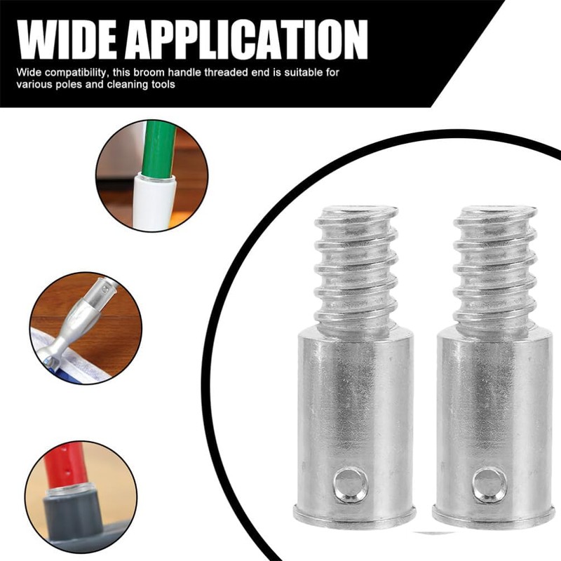 • Versatile Application This broom screw end is not limited to mops; it is also compatible with boat hook rods, pool bars, paint bars, dust collectors, telescopic poles, deck brushes and various other tools. Its utility extends beyond home applications to include areas such as homes, airports, hospitals, hotels, offices, schools, stadiums and more