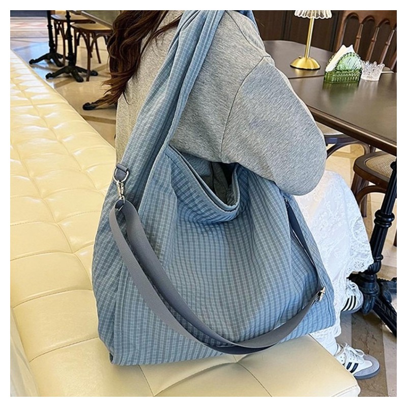 HL] Shoulder bag cross bag bag blue big casual college student Blue