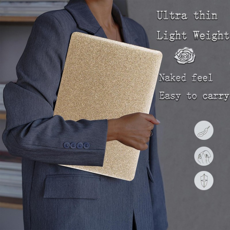 HLAAJJX Case Compatible with 2020 2019 2018 MacBook Air 13 Inch M1 A1932 A2179 A2337 Touch ID, Plastic Hard Case for MacBook Air 13 M1 Retina Display, Leather Glitter Gold
