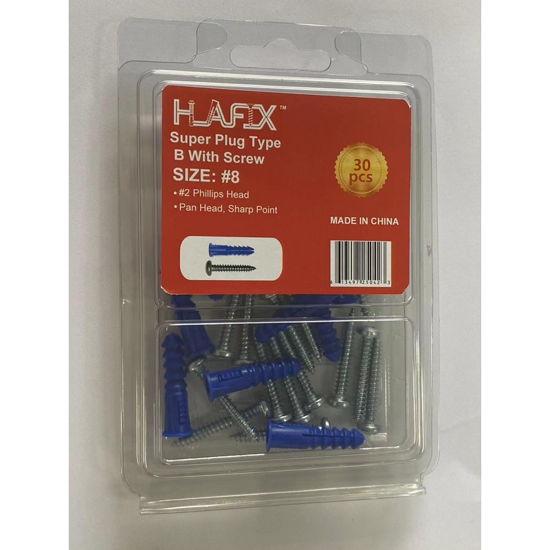 HLAFIX Fastener Blue Super Plug with Screw, 15sets, 8#x1-1/4