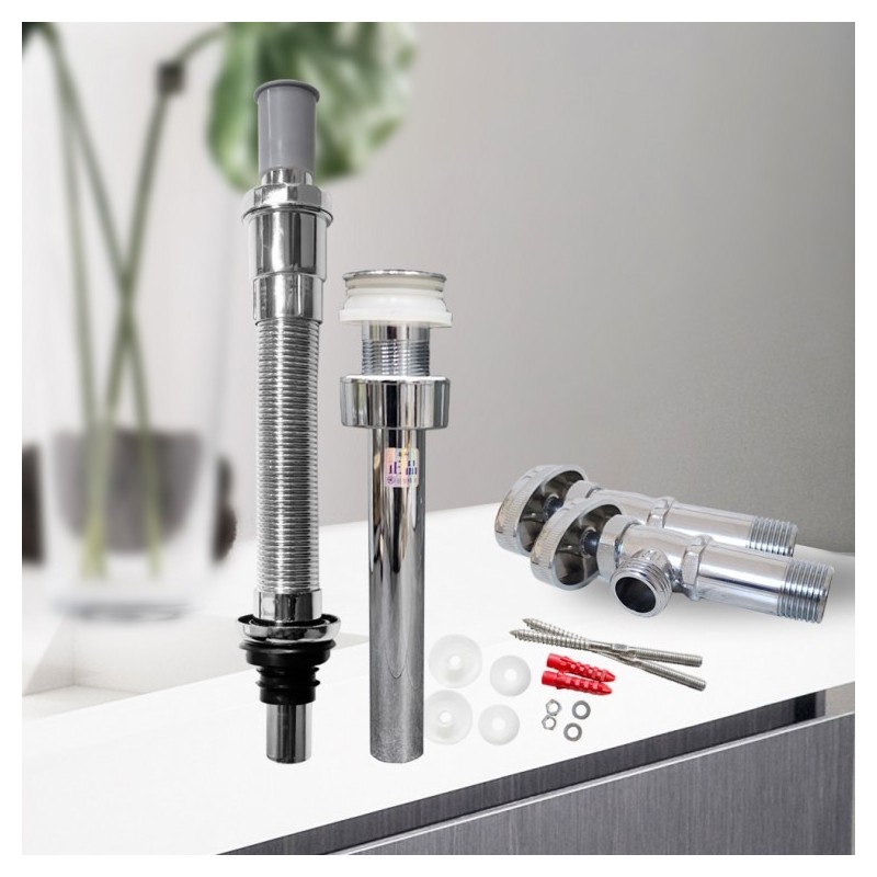 HLBATH Washbasin installation accessories 4-piece set Multipurpose trap Mung pop-up angle valve bolt