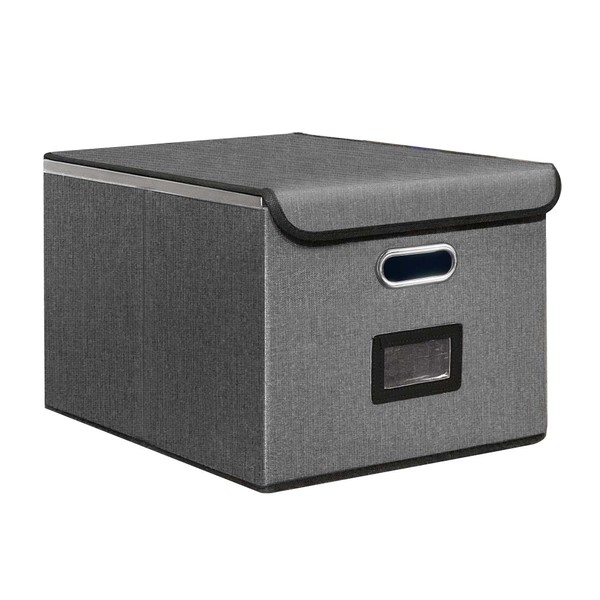 Hleelomi File Organizer Box, Linen filing organizer with Lid, Large Desktop File Boxes, Gray