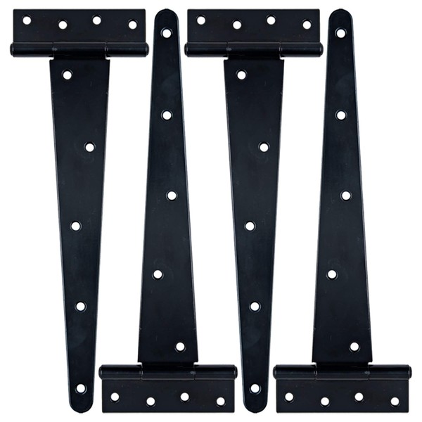 HLMOptimo Heavy Duty T Hinge Tee T Strap Shed Gate Barn Fence Door Hinge Wrought Rustproof All Size Black (4 pcs, 12 inch)