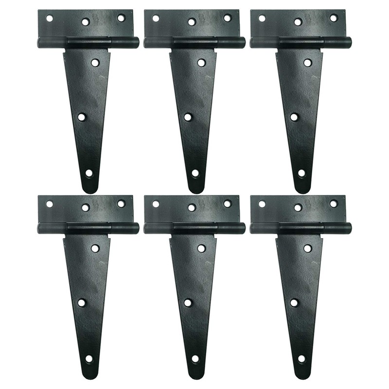 HLMOptimo Heavy Duty T Hinge Tee Hinge T Strap Hinge Shed Hinge Gate Hinge Barn Hinge Fence Hinge Door Hinge Wrought Rustproof All Size Black (6 pcs, 6 inch