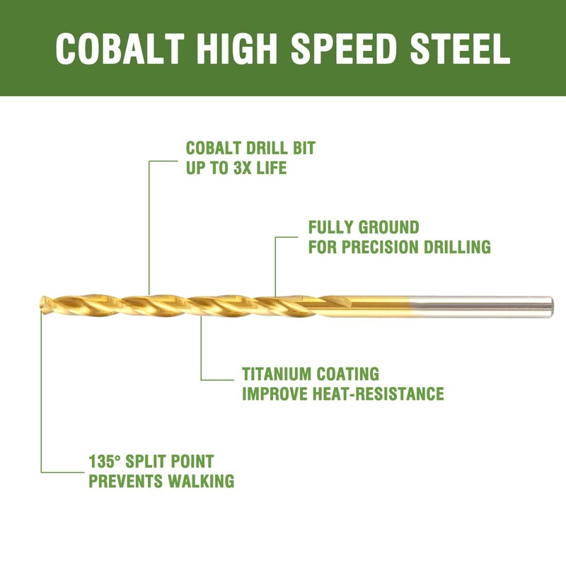 - UP to 3X Longer Life: Made of M35 cobalt high speed steel, provide extreme durability and resisting breakage. Titanium coating for high-heat resistant and rust protection