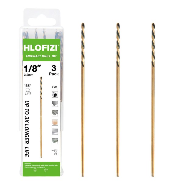 HLOFIZI 1/8 x 8 Inch Extra Long Drill Bits (3 Pack), Aircraft Drill Bit Black...