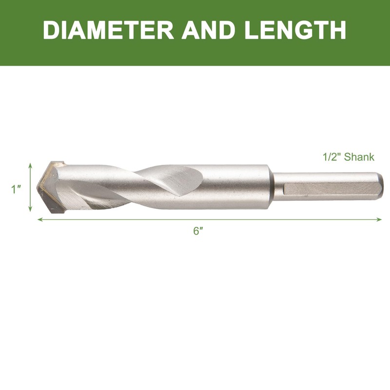- Masonry Drill Bit - 1" x 4" x 6" concrete drill bit, 1 Pack, with 1/2" shank, 3-Flat type
