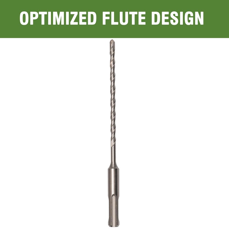 - More Efficiently - Optimized flute design ejects dust faster. Drilling anchor holes into concrete and masonry quickly. Working length 4 in.