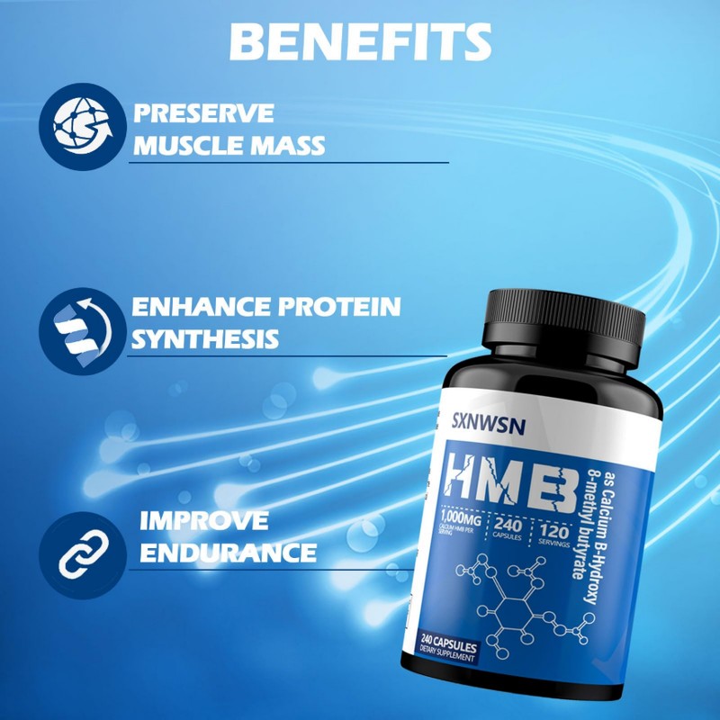 HMB Supplement 240 Capsules - 1,000 MG Calcium beta-Hydroxy beta-methylbutyrate per Serving for Muscle Growth, Strength and Fast Workout Recovery