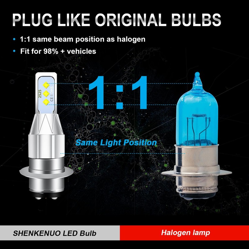 - Pack of 2: Includes two H6 LED headlight bulbs for a complete replacement.