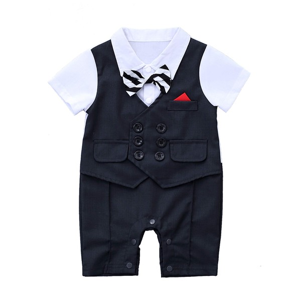 HMD - overol para bebé, diseño de esmoquin, color blanco, Negro, 12-18 M US