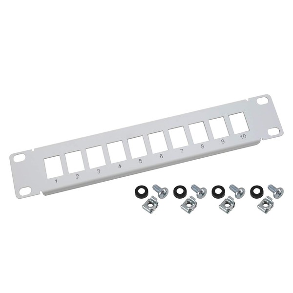 HMF 63345-07 UTP Keystone Patch Panel for Server Cabinet, 10 Inch, 1 U, 10 Ports RJ45, Light Grey