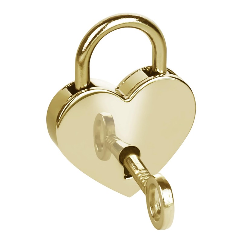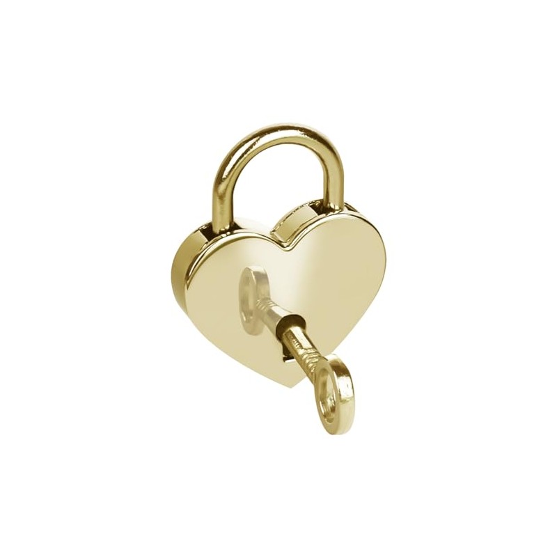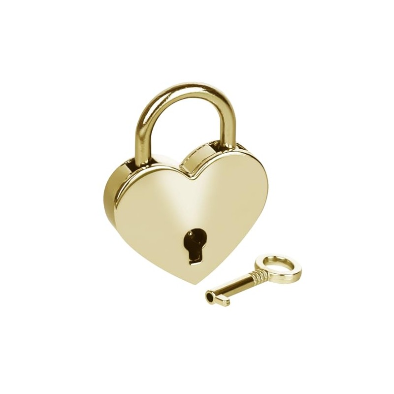 - Small beautiful heart shaped U-lock made of shiny gold metal.