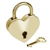 HMF Mini decorative padlock with key in heart shape, 5.9 x 5 x 0.8 cm, gold