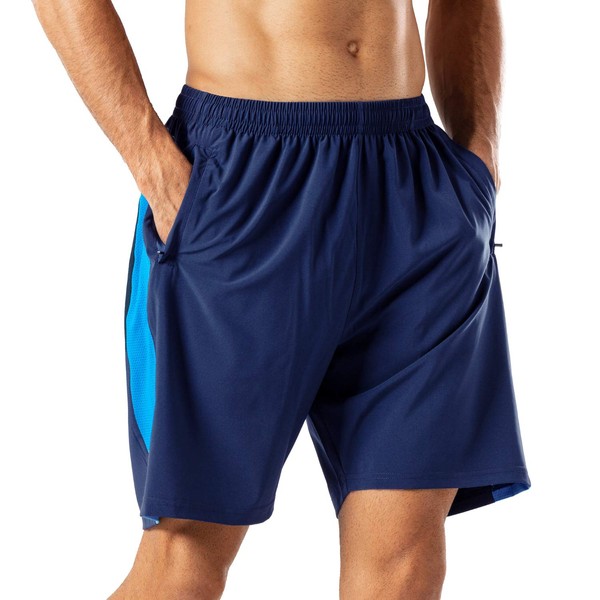 HMIYA Men's Sports Shorts, Quick-Drying Shorts with Zip Pocket, navy blue