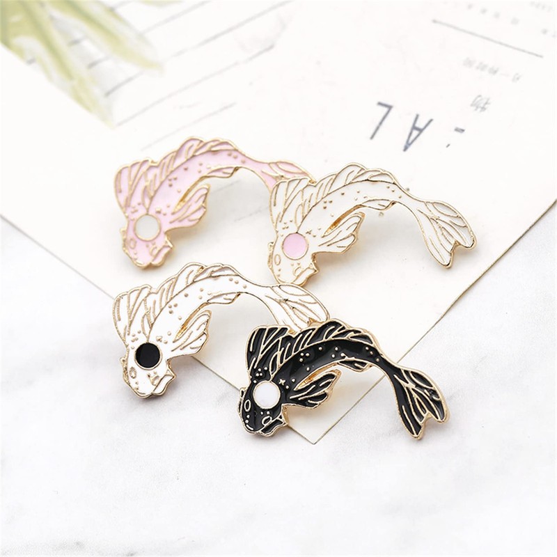 HMOOY 4pcs Koi Fish Brooch, Lovely Fish Shaped Brooch Enamel Lapel Brooch Pin Set Cute Cartoon Pins for Backpacks Hat Clothing Bags Jackets Animal Lapel Brooch DIY Accessories, Metal