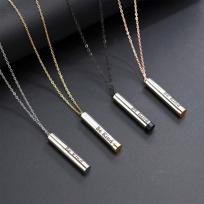 - Hidden Message-Square tubes necklace with hidden message: This vertical bar necklace is engraved with: be kind, remind us to always be kind, the vertical bar inside contains words that represent our lack of mood and cannot be said, which is really an interesting way.