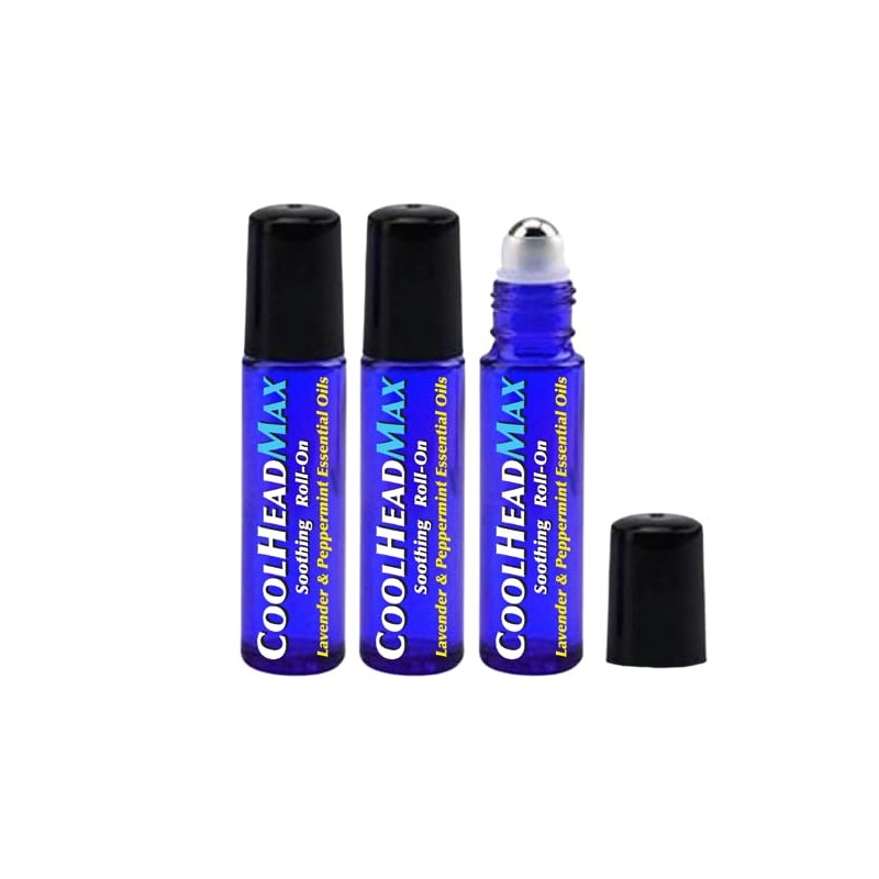 HMP BRANDS HMP BRANDS CoolHead Max Roll On, Natural Peppermint Essential Oil Migraine Relief, Headache Support Roller, Fast Cooling Comfort for Your Head, 3 Pack