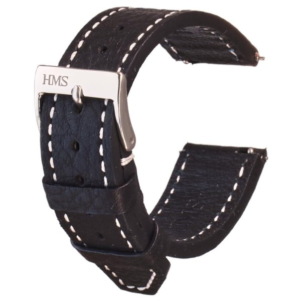 [HMS] Classic Caviar Leather Watch Strap, Quick Release Replacement Band, 20 mm, Leather, No Gemstone