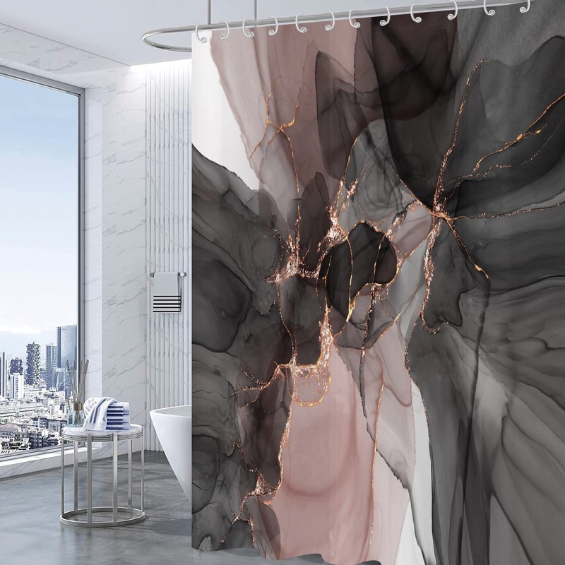 Hnmdmyi Marble Shower Curtain 180x200, Black Pink Glitter Gradient Luxury Abstract Marble Bathroom Curtains Modern Watercolor Texture Ink Art Waterproof Polyester Fabric Washable Bath Curtains